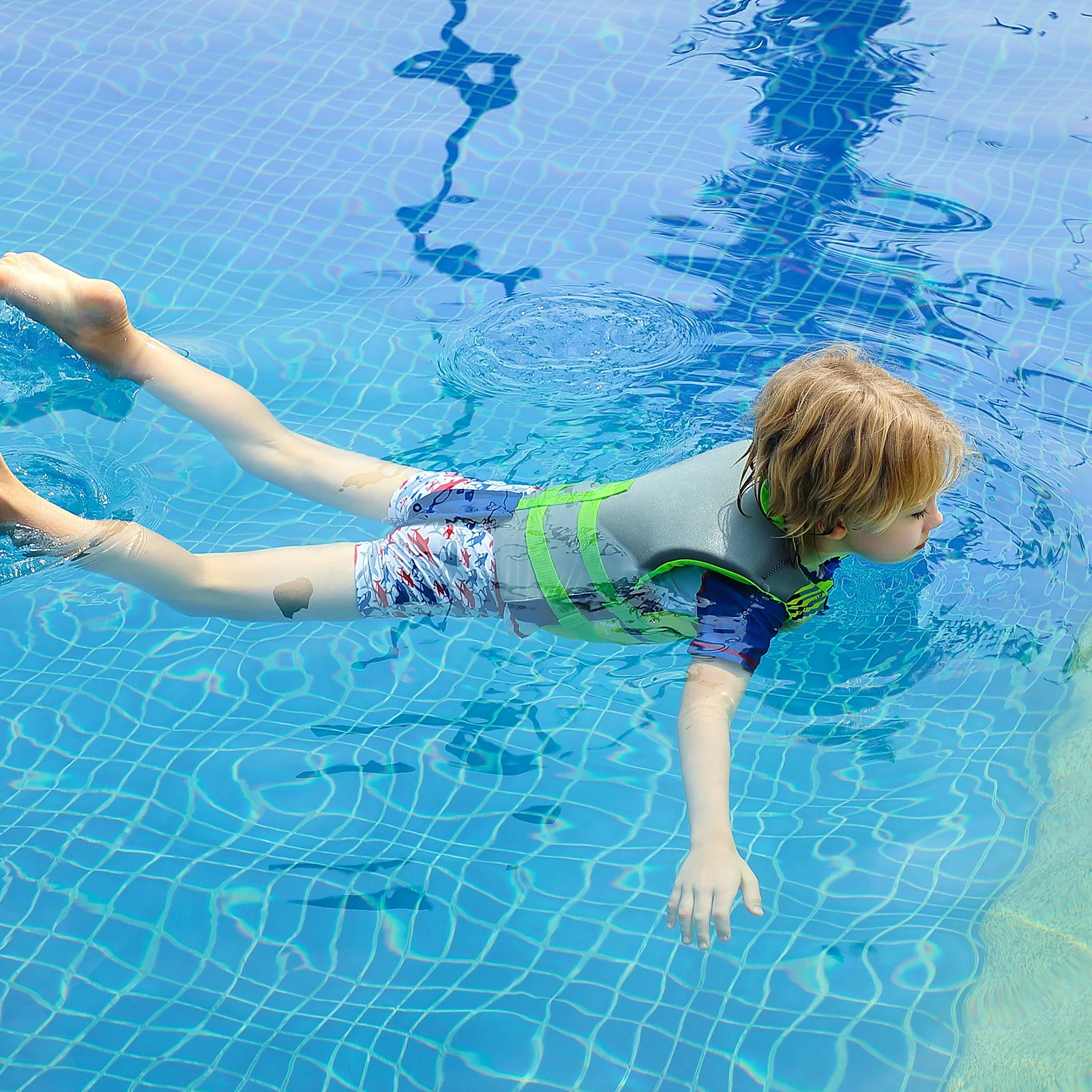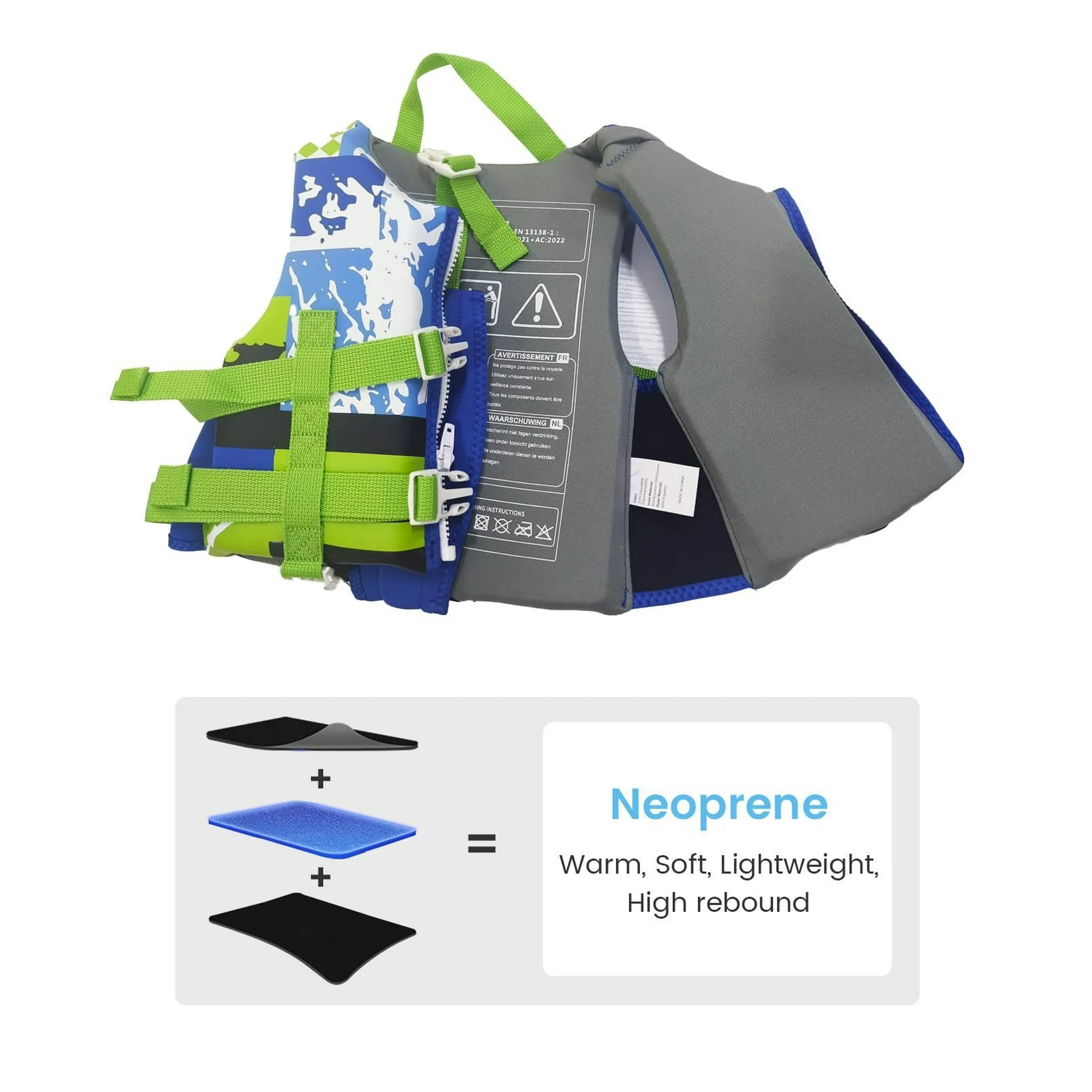 - Neoprene Material Top quality neoprene for warmth and buoyancy, give children more confidence in swimming learning.